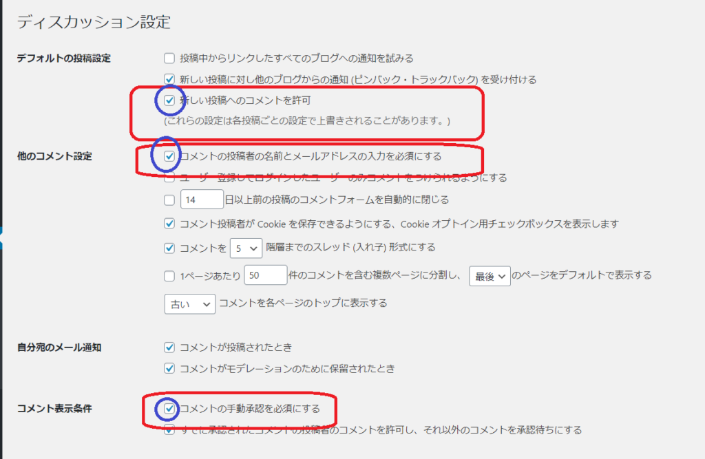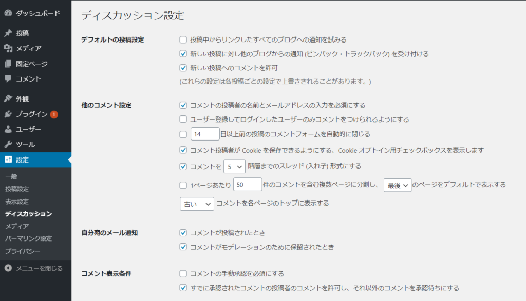 せっかくコメント欄を設置するなら、最低限度、ここまではきっちり設定をしておきましょう。(本当はまだまだやる事あるのですが、詳細は別の記事にて・・・・)