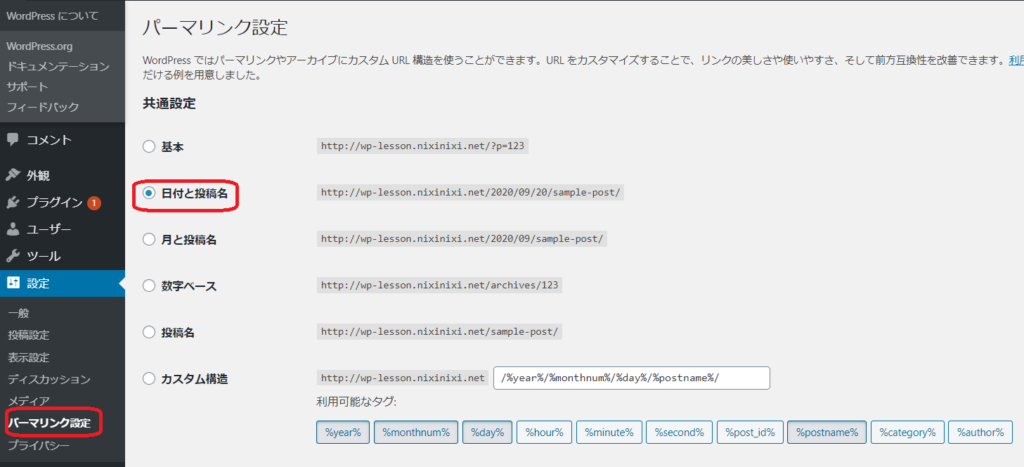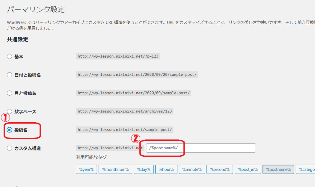 パーマーリンク設定とは、WordPressで作ったサイト(ブログ)のURLの構造をどのようにするのか?カスタマイズできる設定メニューです。